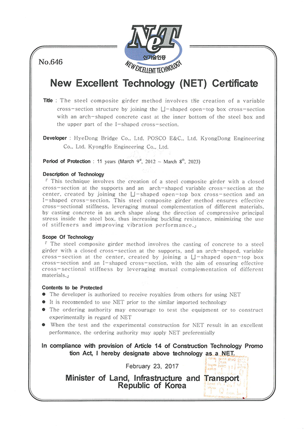 제        목 SBarch 건설신기술등록증 제646호(영문)