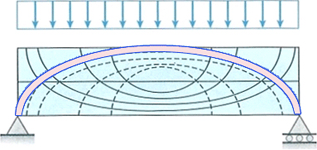 아치형태의 콘크리트 합성단면이 전단면 압축 저항하여 거더의 강성을 증대 시키고