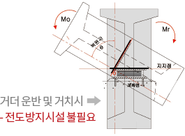 | 전도방지시설 필요, 크레인 고정 | 전도방지시설 불필요, 장비가동을 개선 | ||