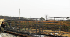 | 철근 조립 후 거더내부 철근에 매달아 쉬스관 설치 및 그라우팅 주입 |